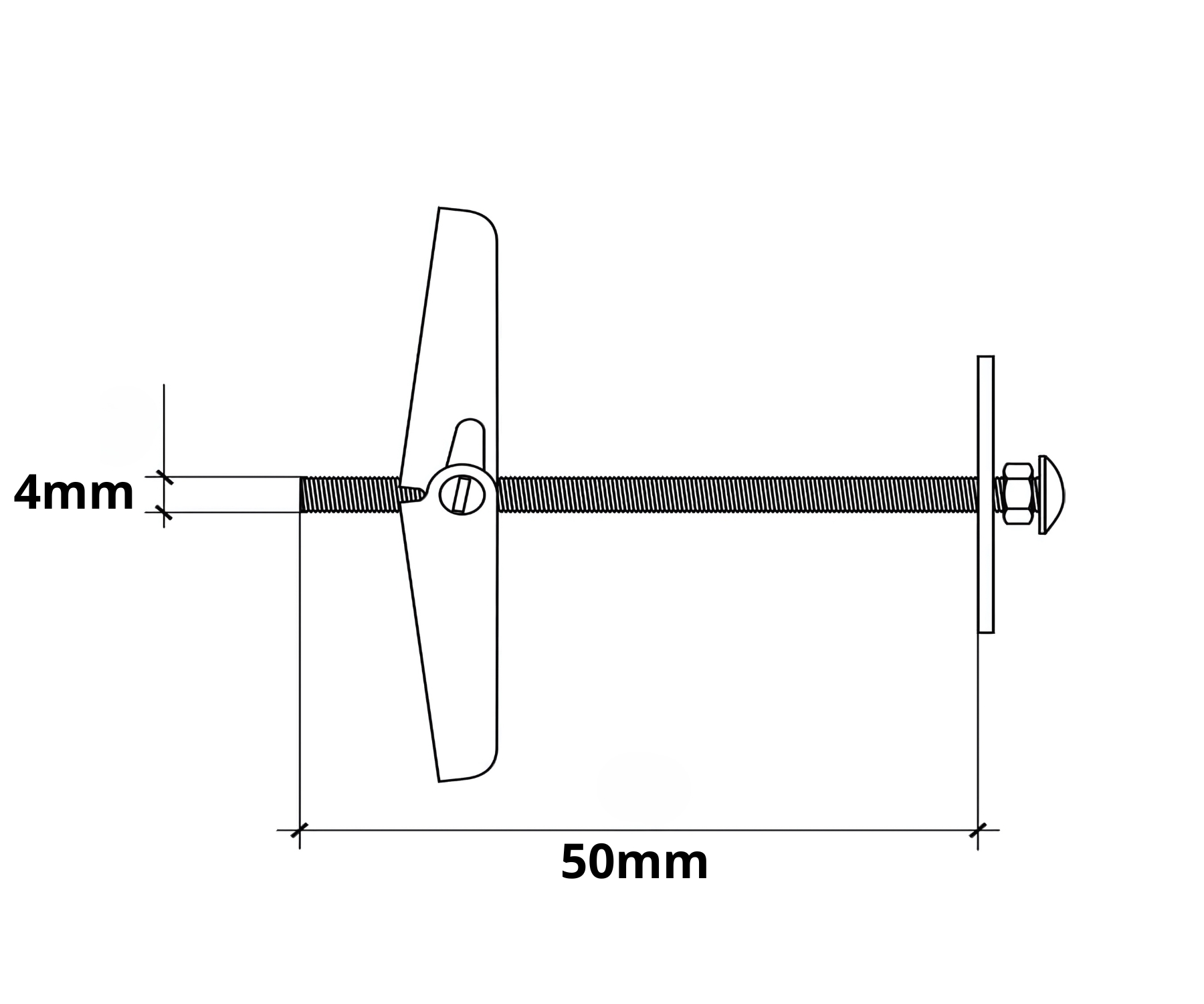 В упаковке: 2 шт. Цена за упаковку Винт: M4 Диаметр сверления: 14 мм Общая длина: 50 мм Приложение: гипсокартон