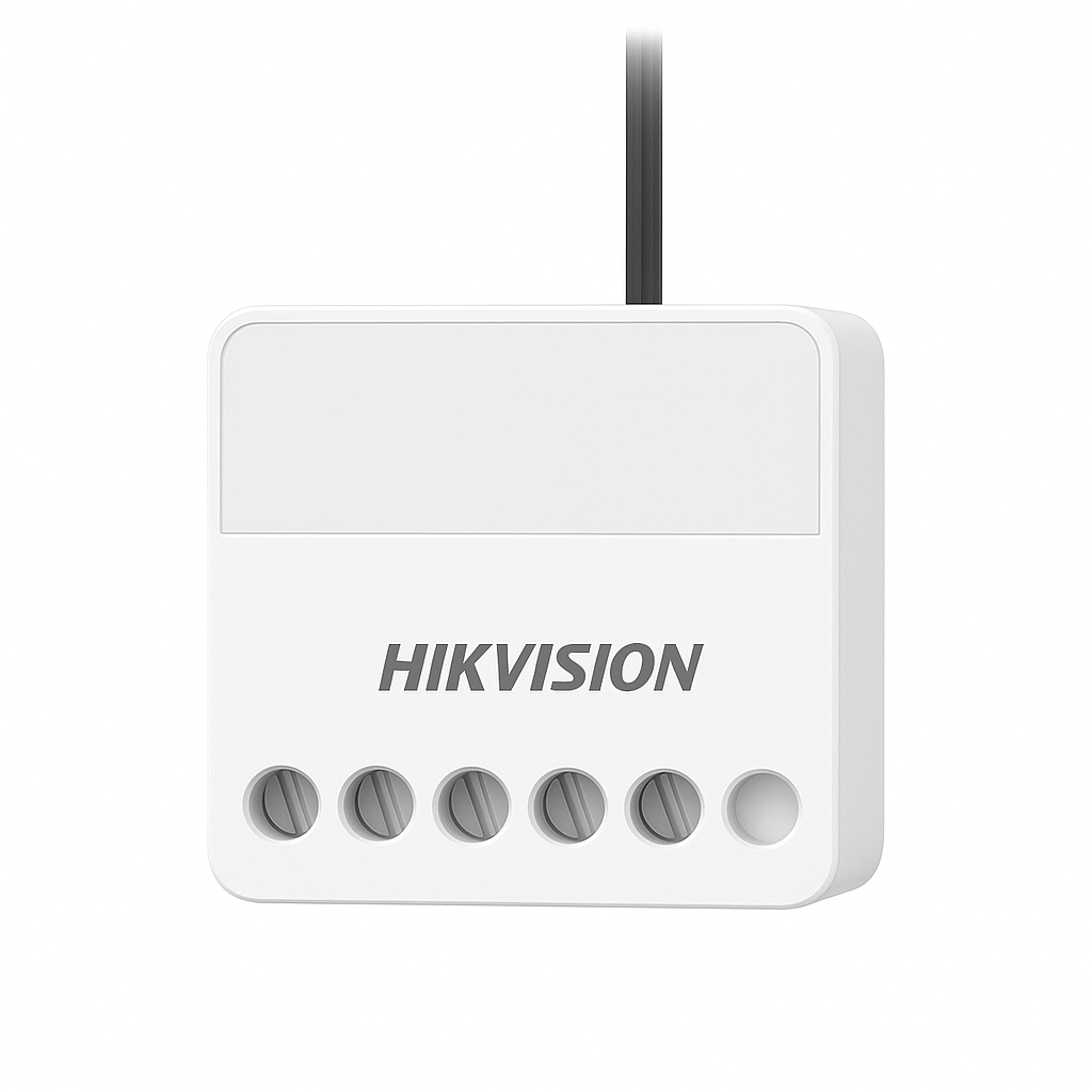 Hikvision DS-PM1-O1L-WE ir bezvadu releja modulis AX PRO sistēmām, paredzēts attālinātai elektrisko ierīču vadībai (vārti, apgaismojums, automātika). Relejs darbojas ar 7–24 V DC, nodrošina galvanisko nošķīrumu un divvirzienu Tri-X Wireless sakaru tehnoloģiju stabilam un drošam savienojumam.