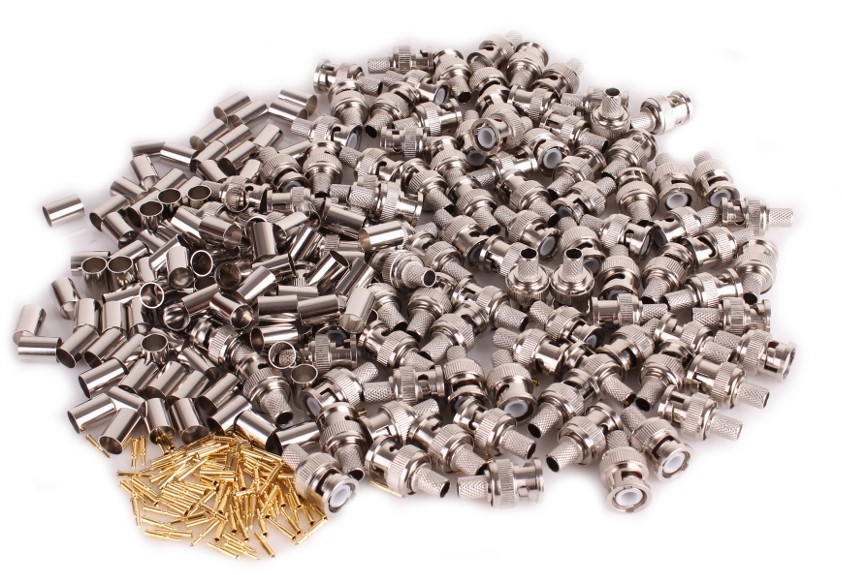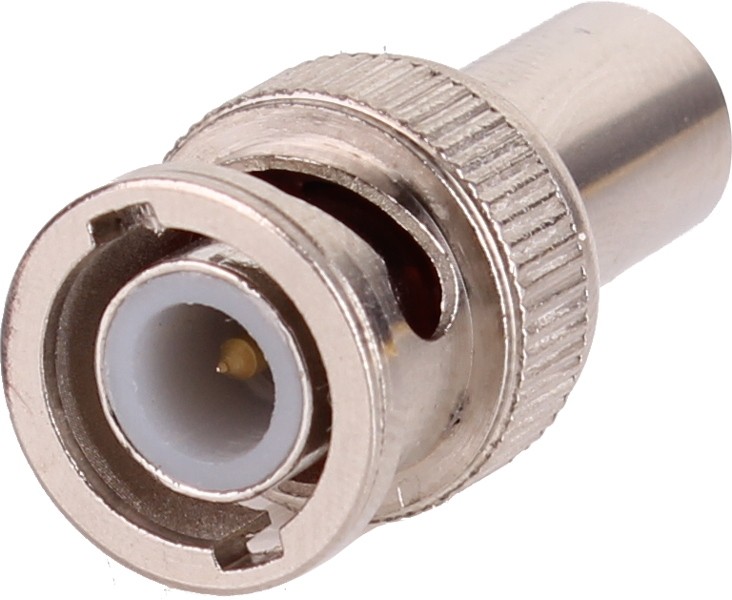 Монолитный BNC-разъём из никелированной латуни. Используемый материал не гарантирует коррозионную стойкость. Высокая точность работы влияет на внешний вид и качество соединения. Правильная опрессовка очень проста и гарантирует надёжное и стабильное соединение на долгие годы. Муфта имеет два полных (360°) кольца, которые вдавливаются внутрь в результате процесса сжатия (продольного, осевого сжатия) муфты. Размеры этих колец подобраны таким образом, чтобы после сжатия разъёмы соединялись с оболочкой кабеля с усилием, достаточным для предотвращения срыва разъёма с провода, и достаточно малым для повреждения структуры кабеля.