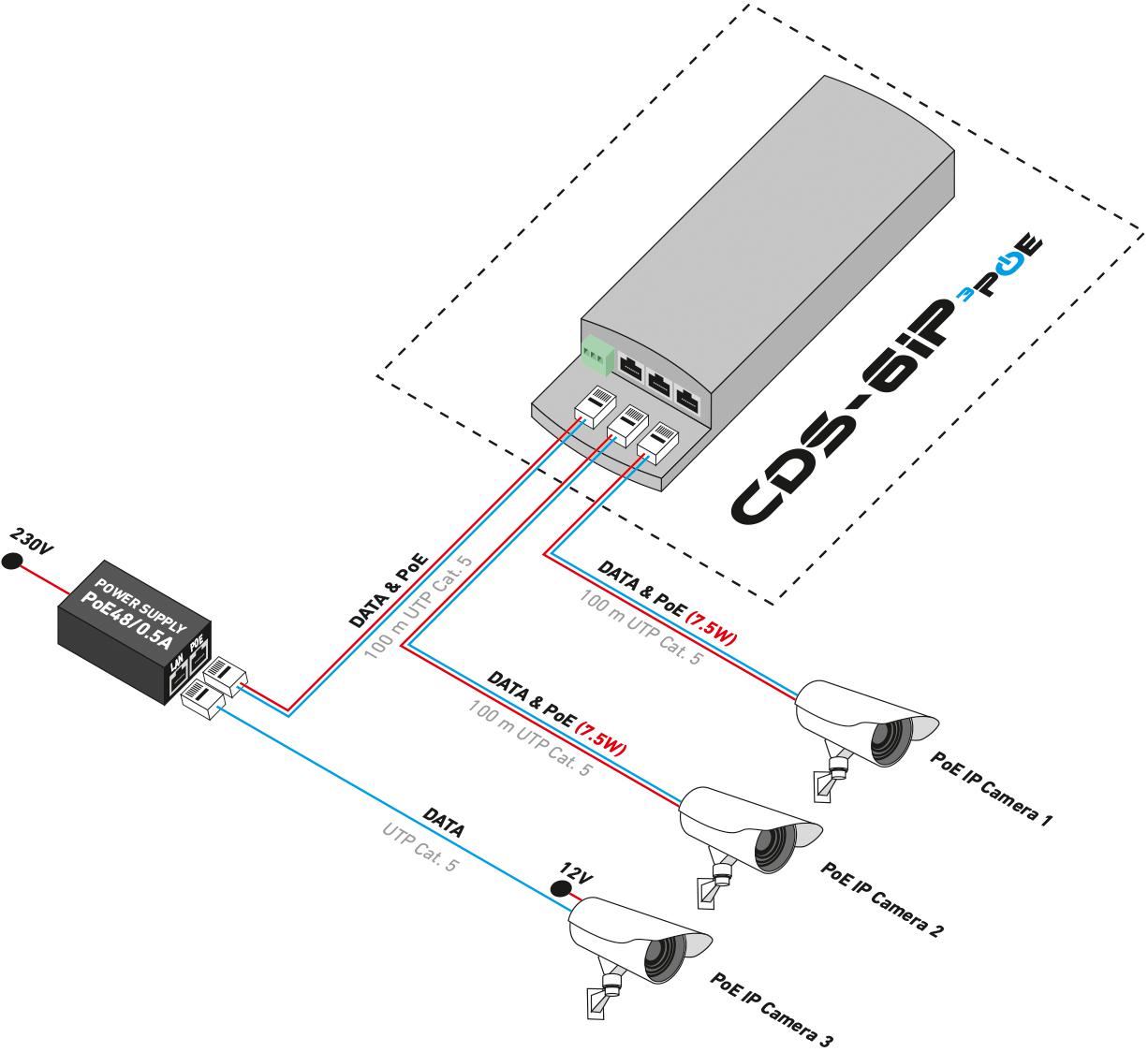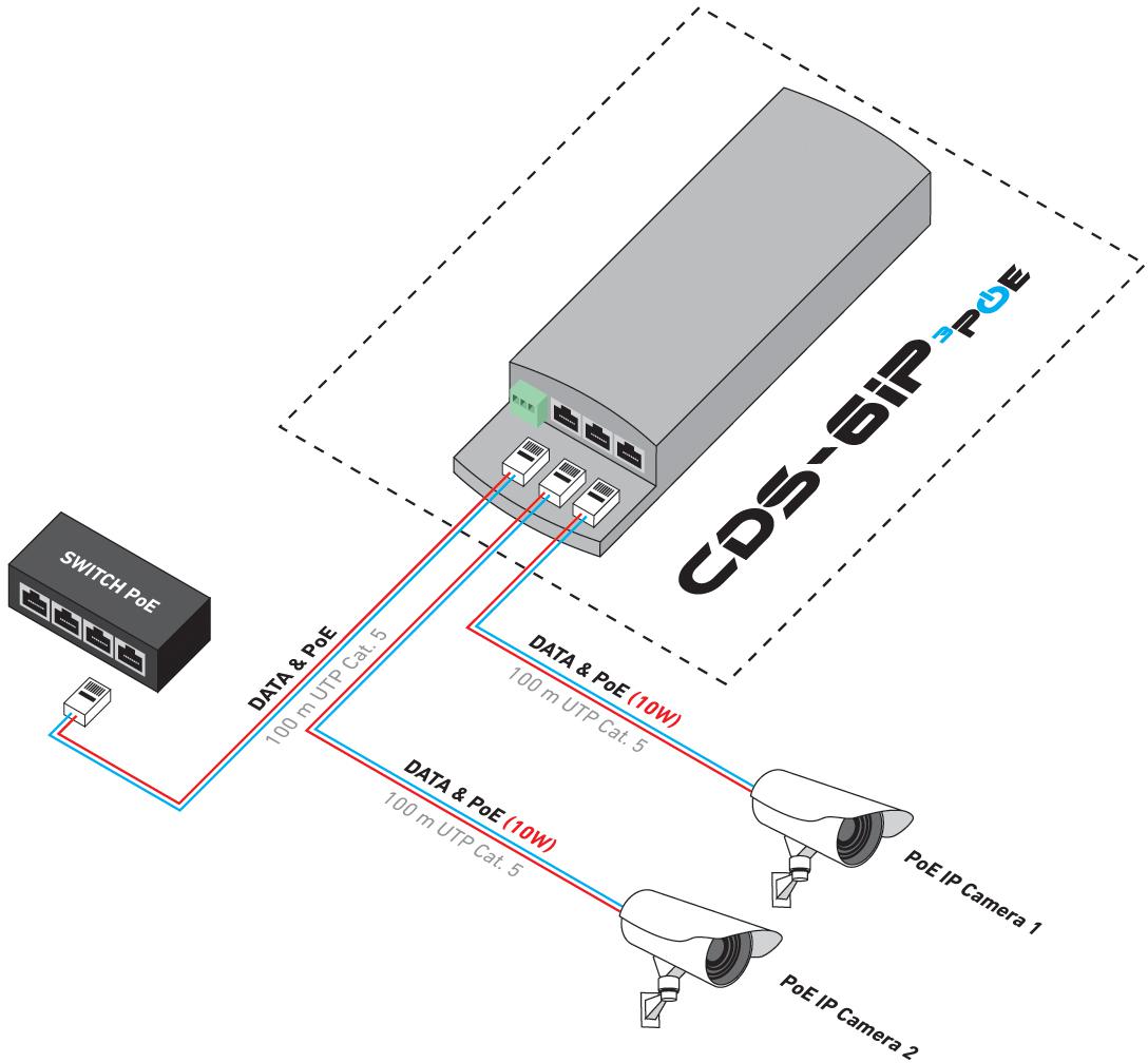 Устройство CDS-6IP 3PoE — это двунаправленное устройство, которое прозрачно передает все данные между сетями. Необязательно назначать IP-адреса того же семейства, что и камера. Радиоустройства должны иметь те же IP-адреса, что и беспроводное соединение.
