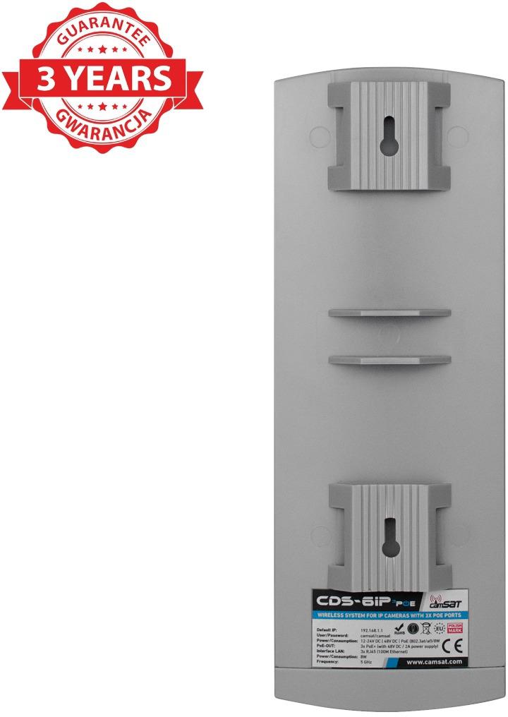 3x PoE+ означает экономию и более быструю установку. В комплект входит блок питания мощностью 24 Вт, обеспечивающий питание IP-камер общей мощностью 15 Вт. Для более мощных камер достаточно подключить блок питания постоянного тока 48 В с соответствующей токовой нагрузкой, например, ZS-48V/2A. Беспроводная система CDS-6IP 3PoE оснащена портами PoE стандарта PoE 802.3at/af мощностью 30 Вт на порт, что обеспечивает эффективность до 90 Вт и позволяет подключать даже очень большие IP PTZ-камеры.