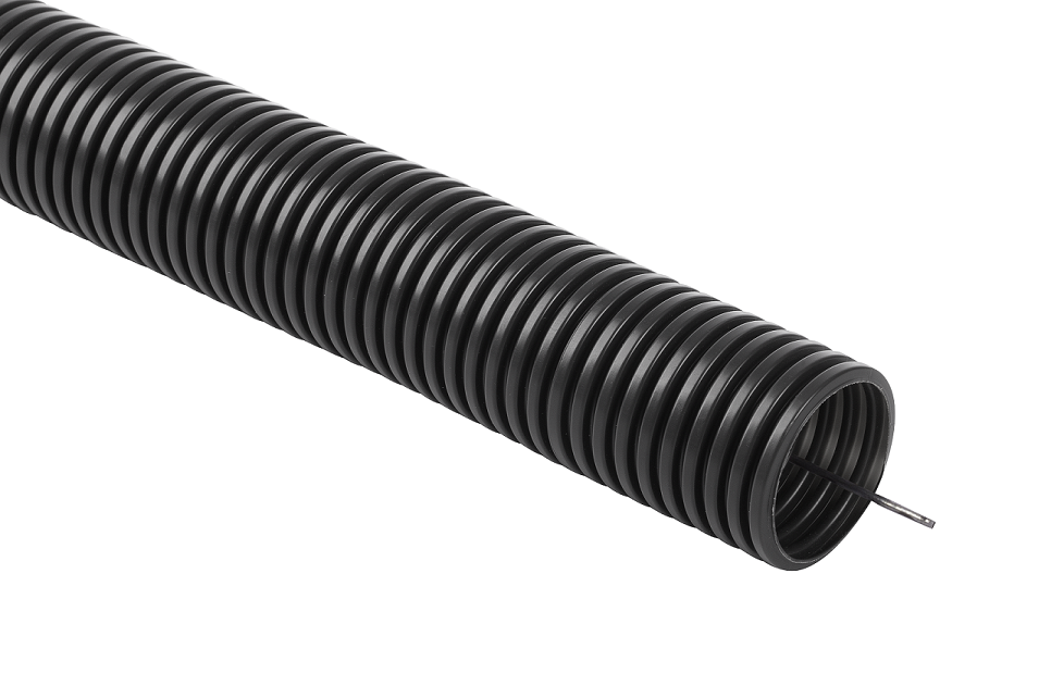 Гибкая гофрированная монтажная труба, ПВХ, УФ, 320Н с пилотом 32/26 25м