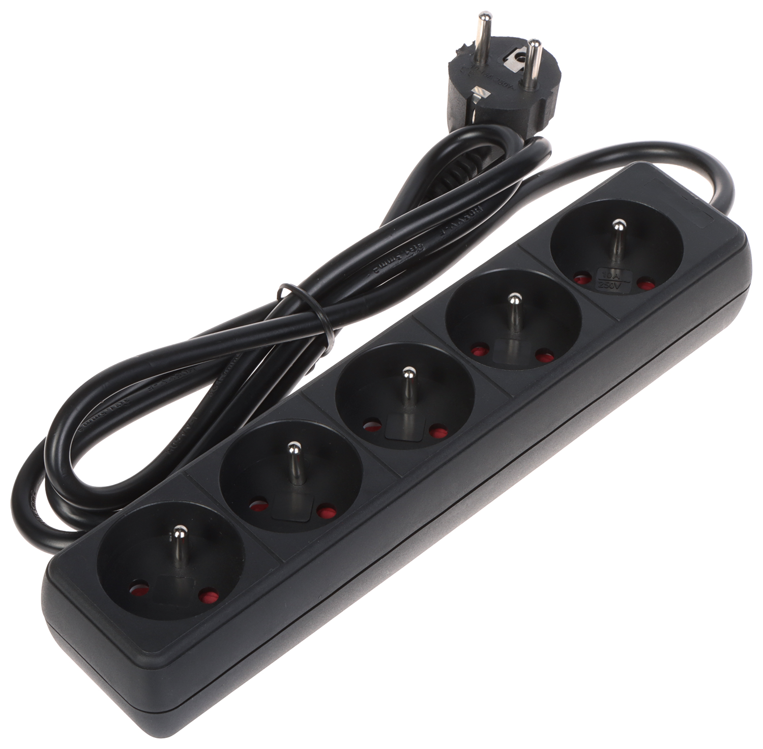 Качественный удлинитель питания с кабелем длиной 1,3 м; Максимальная общая нагрузка: 2500 Вт </span>;>Количество выходных разъемов: 5 розеток с заземляющим контактом 10А/250В CEE 7/5 </span>;>Цвет: Черный </span>;