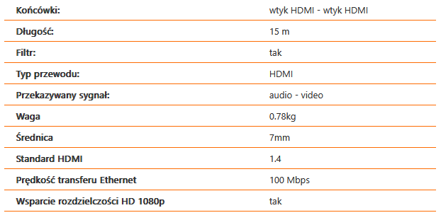 Фильтры кабеля HDMI-HDMI v1.4+ 15 м — основные характеристики: