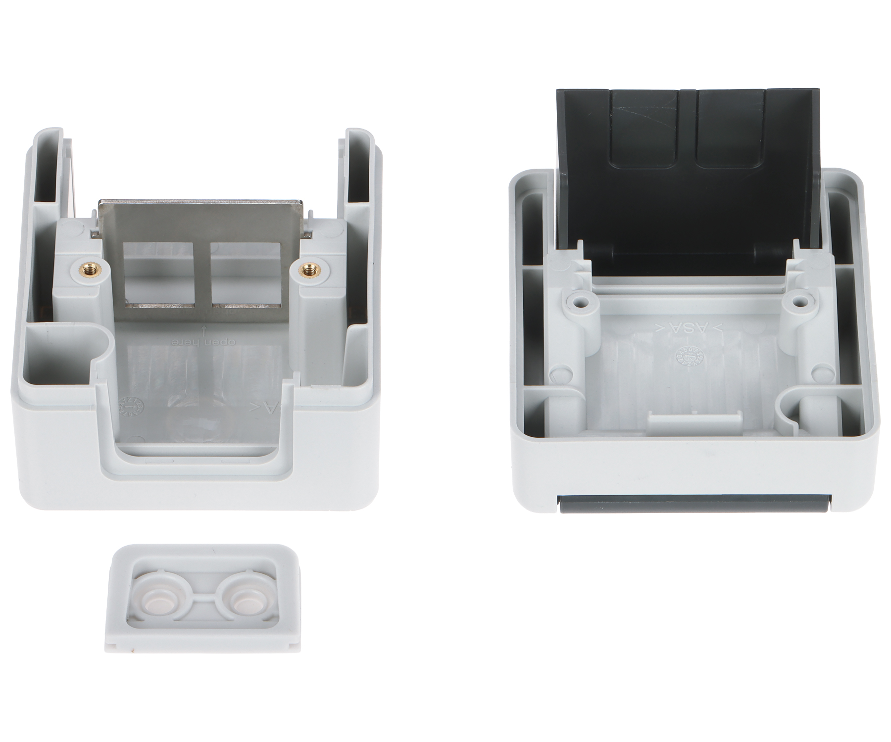Корпус разъема Keystone; Место подключения: 2 шт. Цвет: Gaiši pelēks + Tumši pelēks Избранные функции: Aizsardzības klase : IP44 Korpusa aprīkojumā lauka iezīmēšana 40×12 mm Divi kabeļu vadi kabeļu ievadam