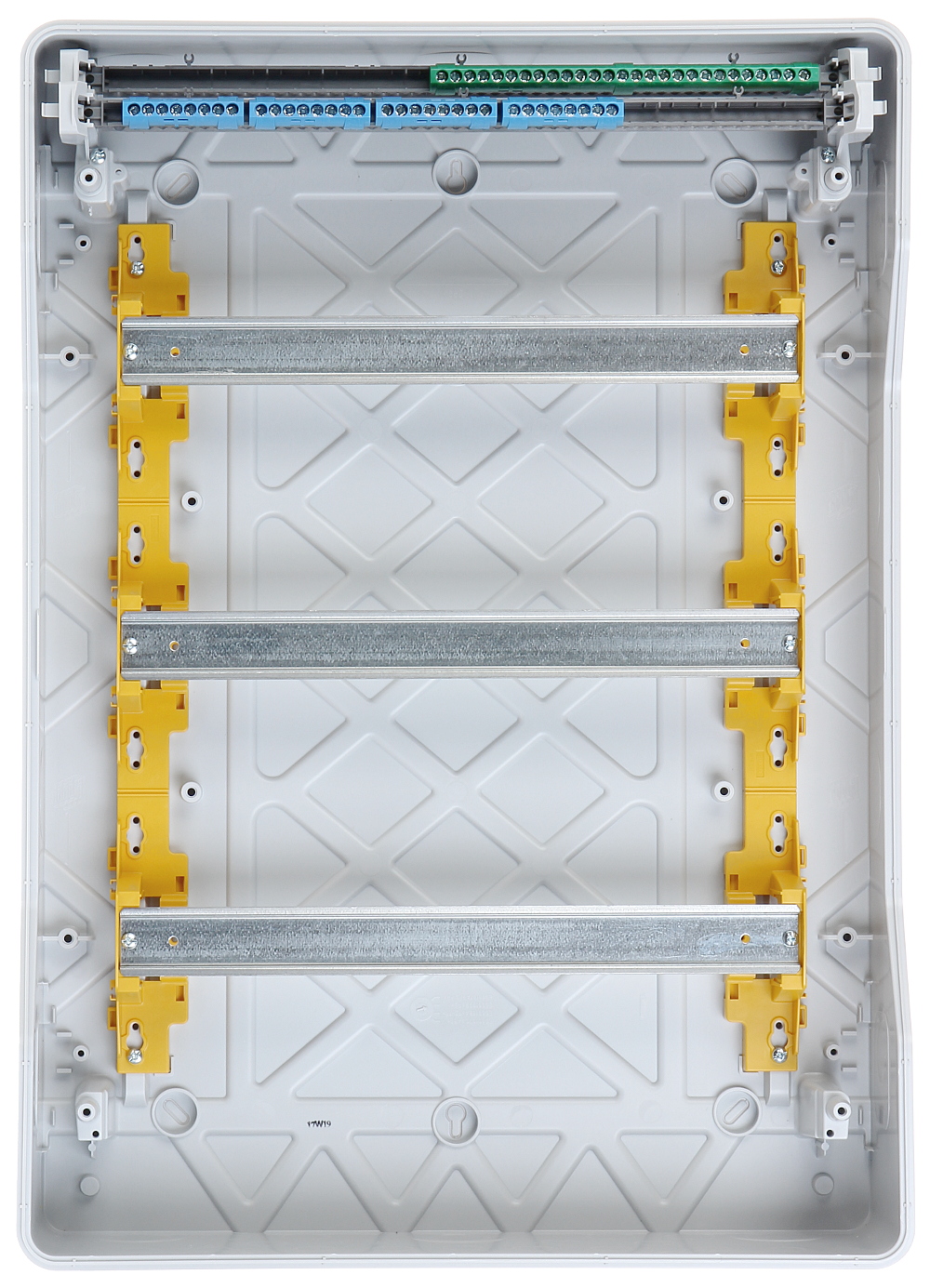 | Избранные функции: | Корпус, защищенный от атмосферных воздействий. Полностью реверсивные дверь и корпус. Съемные шасси и монтажные пластины. Монтажная рейка TH 35 с 2-позиционным креплением для модульных изделий. Может быть оснащена выбранными монтажными пластинами для установки немодульных изделий. Дверные ручки адаптированы для установки замка, крышка и монтажная пластина могут быть опломбированы. Номинальное напряжение: 400 В переменного тока, 50/60 Гц. Максимальный ток: 125 А. Ток короткого замыкания: 10 кА. В комплект входят клеммные колодки и модульная крышка. |