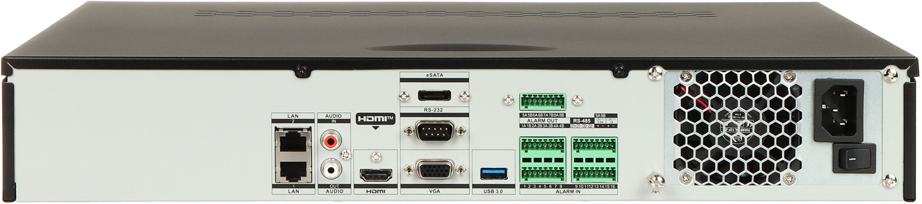 Поддерживаемое разрешение: 12 Мпикс. </span>;>Поддерживаемые жесткие диски: 4 x 16 TB SATA + 1 x eSATA </span>;>Метод сжатия изображения: H.265+ </span>;>Входы/выходы аварийной сигнализации: 16 / 9 </span>;