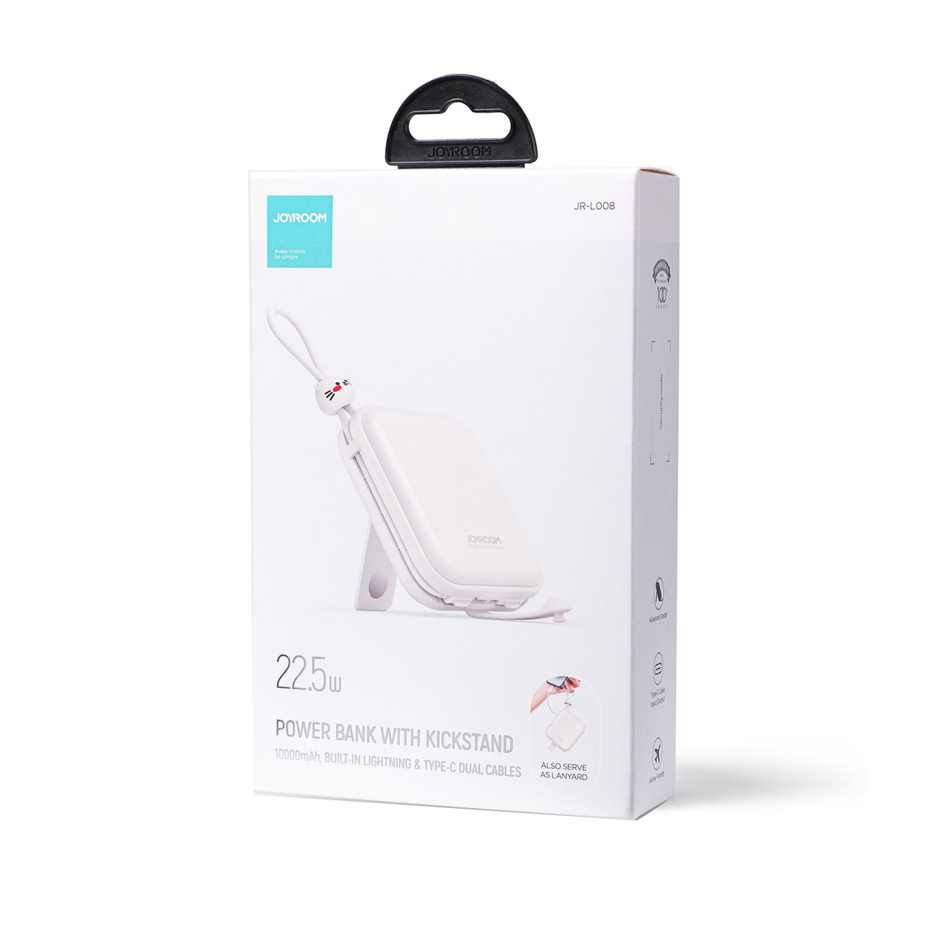 Внешний аккумулятор Joyroom Cutie Series 10000 мА·ч 22,5 Вт с кабелями USB-C и Lightning и подставкой (JR-L008) — характеристики и технические данные:
