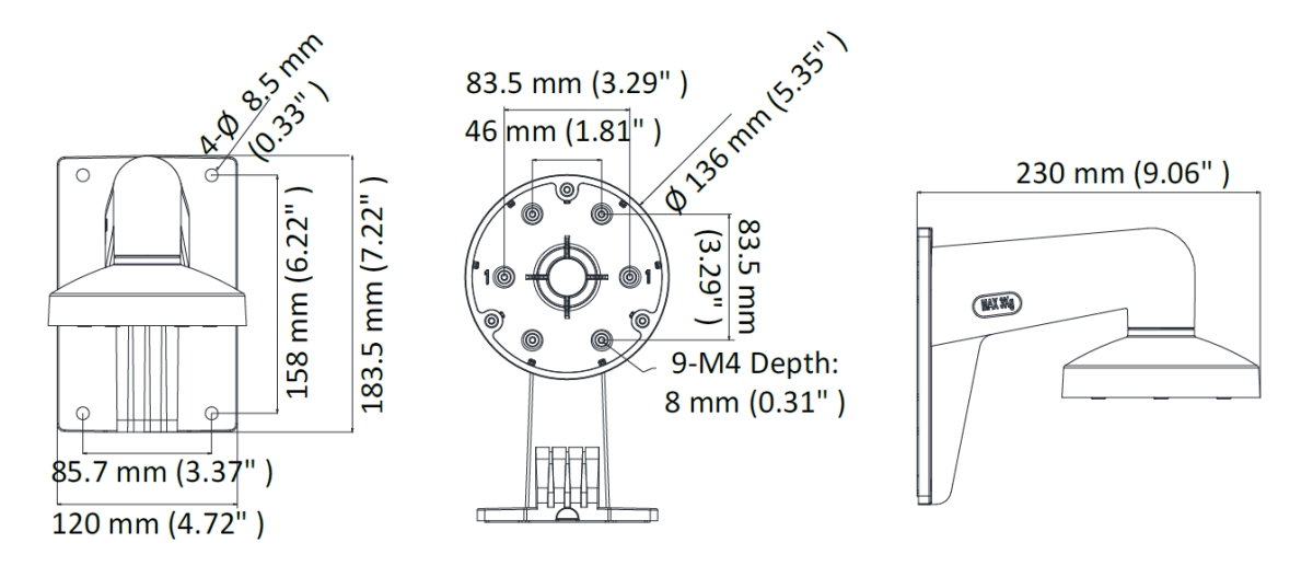 Расположение монтажных отверстий: 83.5 mm, 46 x 83.5 mm </span>;>Количество отверстий: 2 vai 4 </span>;>Грузоподъемность: 3 kg </span>;>Диаметр крепления: Ø 136 mm </span>;>Подходит для камер: Hikvision </span>;>Материал: Алюминиевый сплав </span>;>Цвет: Черный </span>;>Расстояние от монтажной поверхности: 94 mm </span>;