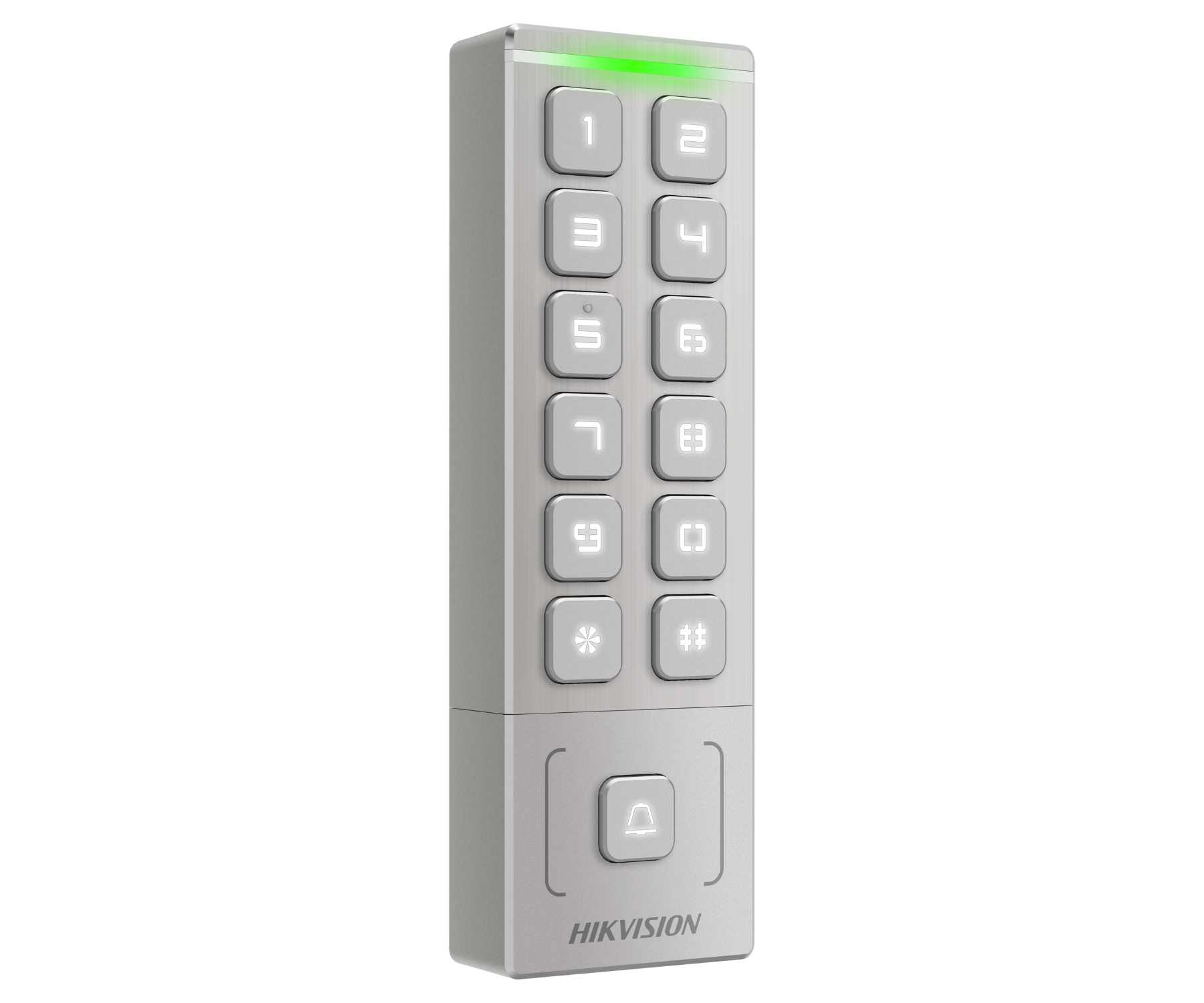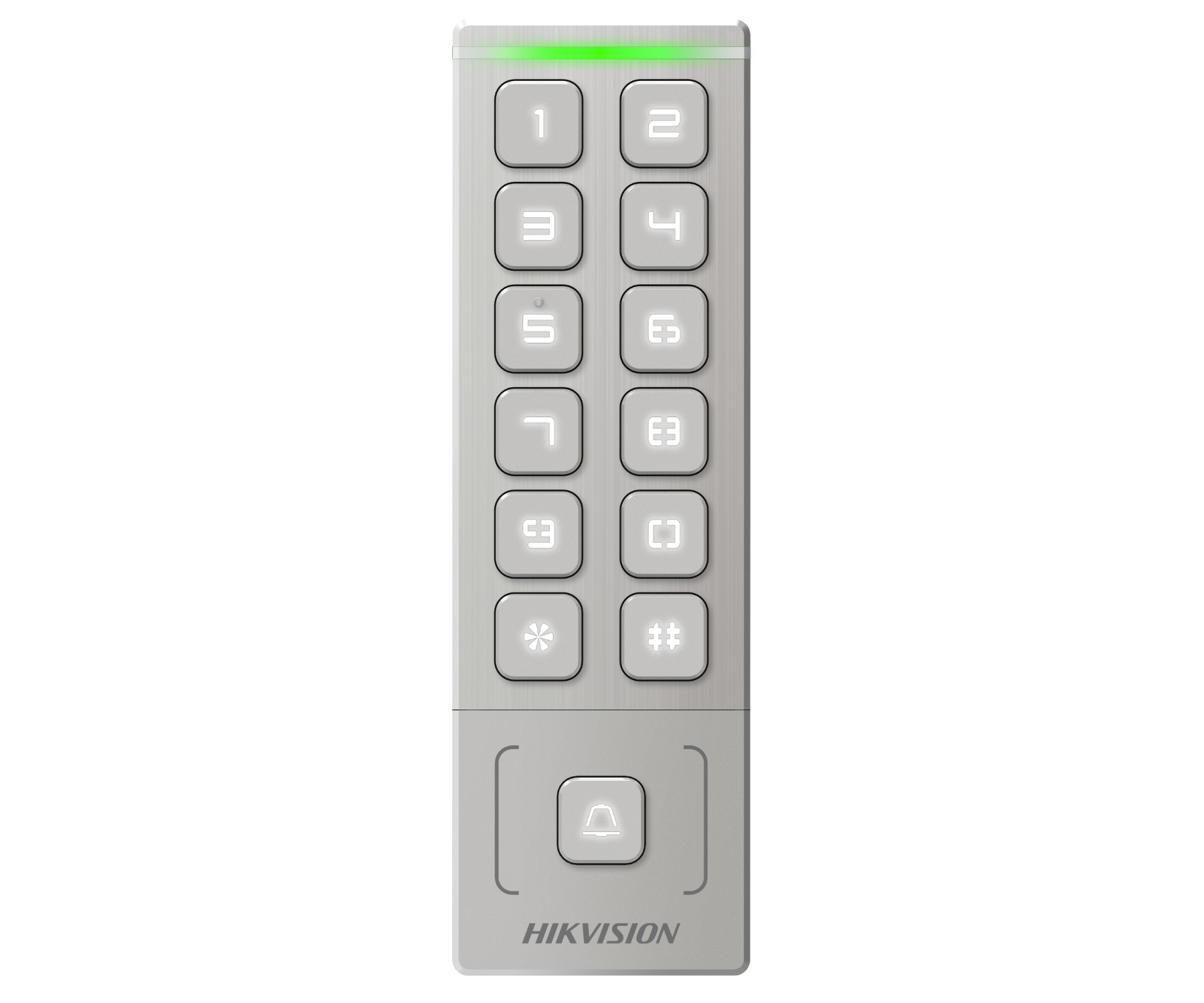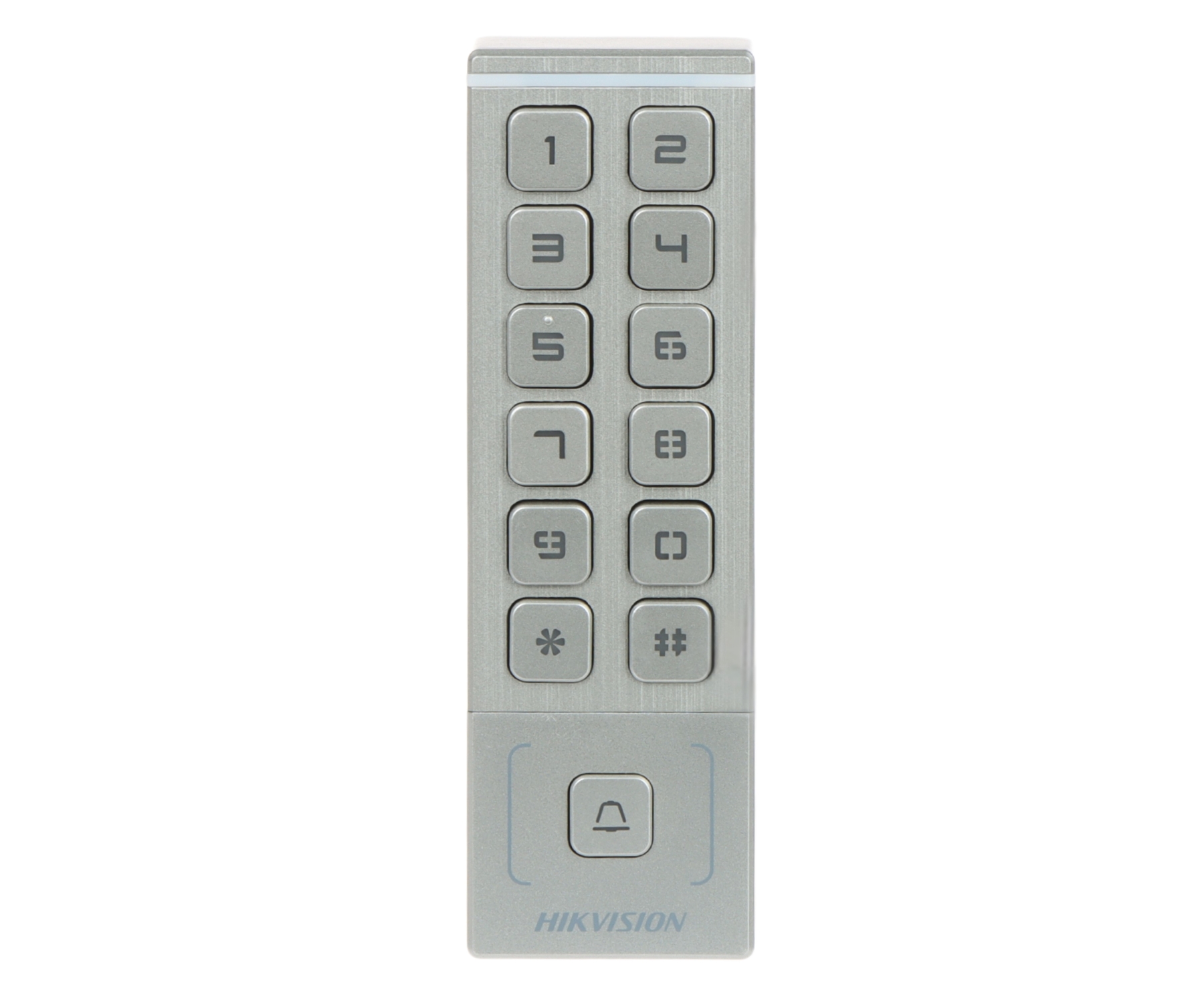 Внешняя автономная система кодов доступа; считыватель RFID; Совместимо с картами: 13,56 МГц S50 </span>;>Дальность считывания карт: 3 cm </span>;>Встроенная клавиатура</span>;>Коммуникация: Wiegand 34/26 Wi-Fi </span>;>Кнопка дверного звонка</span>;>Избранные функции: Releja izeju skaits : 1 gab. NO/NC, 1000 indeksētie lietotāji, RFID karšu atmiņa 5000, Identifikācija: Karte un/vai PIN, Avārijsignalizācijas izeja </span>;>Класс защиты: IP65 </span>;>Тело: Металл </span>;