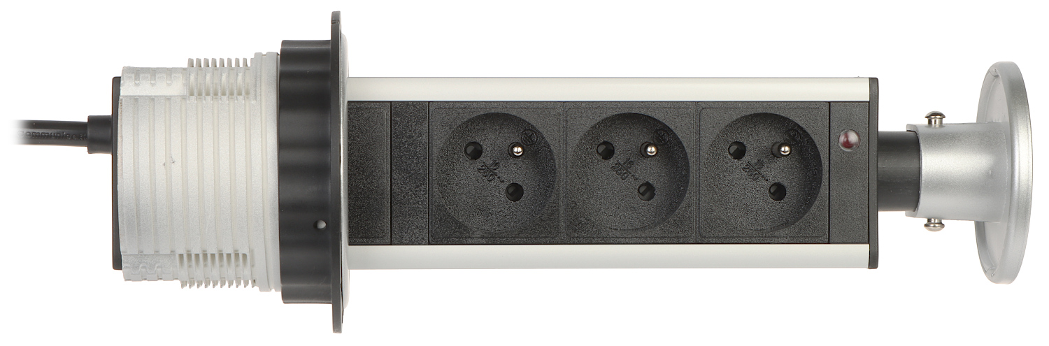Блок розеток для мебели оснащен 3-мя заземленными розетками, выдвижными из столешницы, с кабелем длиной 1,8 м; Максимальная общая нагрузка: 3680 Вт </span>;>Количество выходных разъемов: 3 розетки с предохранительной вилкой CEE 7/5 16 А/250 В, тип E </span>;