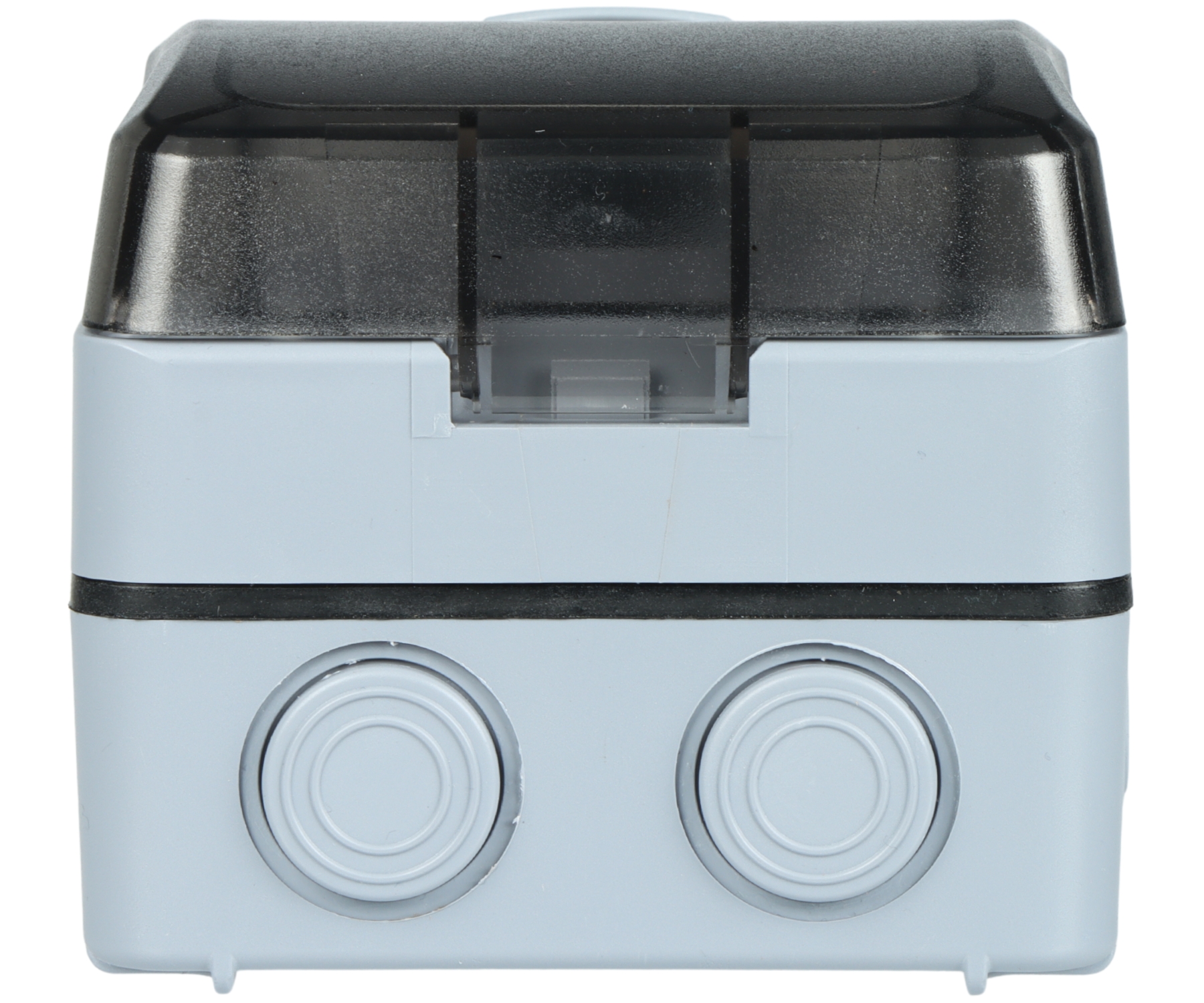 Устойчивость к ультрафиолетовому излучению Устойчивость к погодным условиям Резиновая прокладка Daļēji caurspīdīgs atvāžams korpusa vāciņš ar aizdares aizdares fiksatoru Iebūvējamā kaste ar kabeļu ieliktņiem Kabeļievadi : 5 gab. – 20 mm |