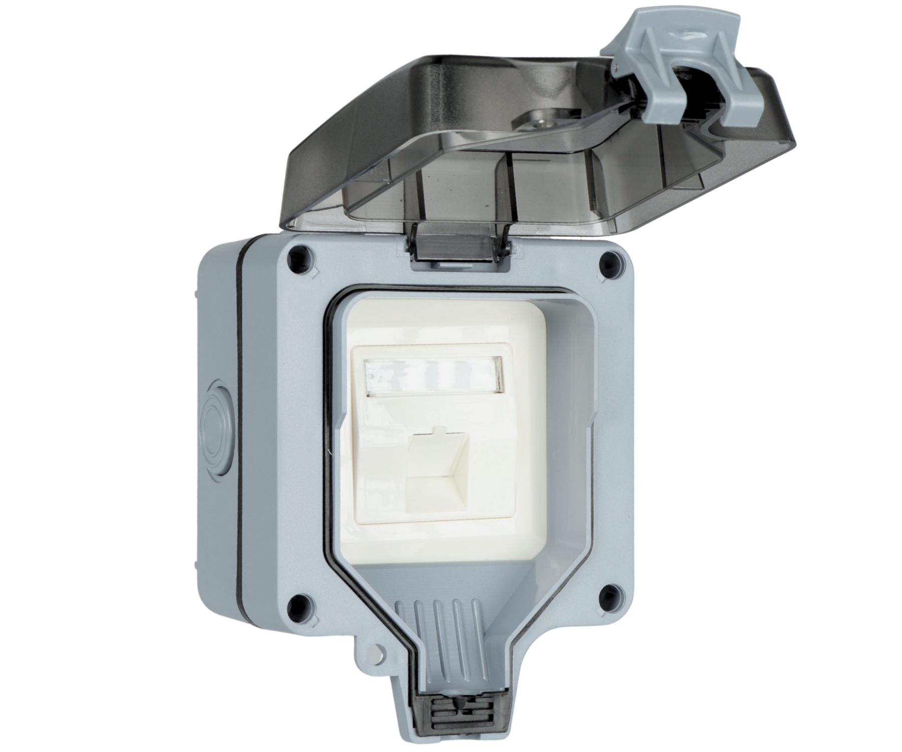 Корпус разъема Keystone; Место подключения: 1 шт. Избранные функции: Устойчивость к погодным условиям Цвет: Серый Класс защиты: IP66