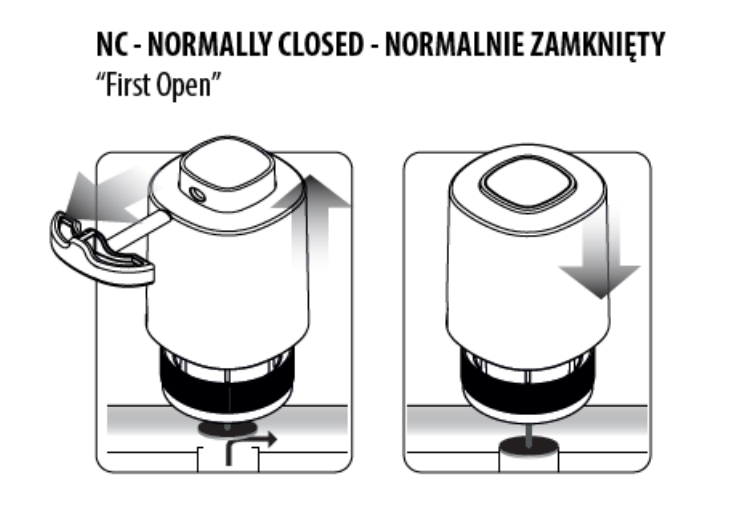 Термоэлектрический привод в конфигурации NC (нормально закрытый). Привод открывается при подаче напряжения 24 В. Это позволяет точно регулировать температуру в помещении, регулируя подачу горячей воды в радиатор.