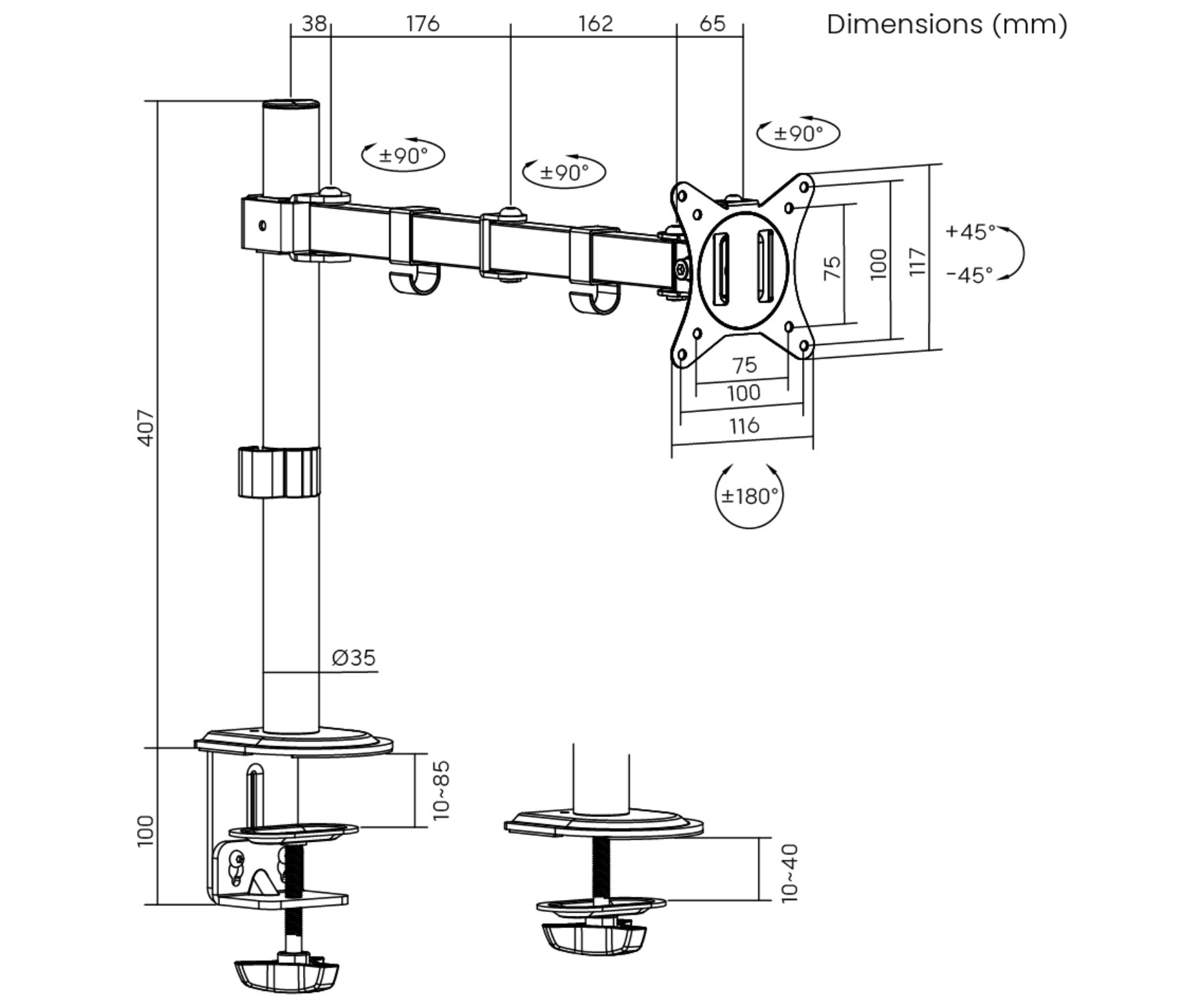 Стандарт сборки: VESA 100 x 100, 75 x 75 Размер экрана в дюймах: 17 " … 32 " Грузоподъемность: 9 кг