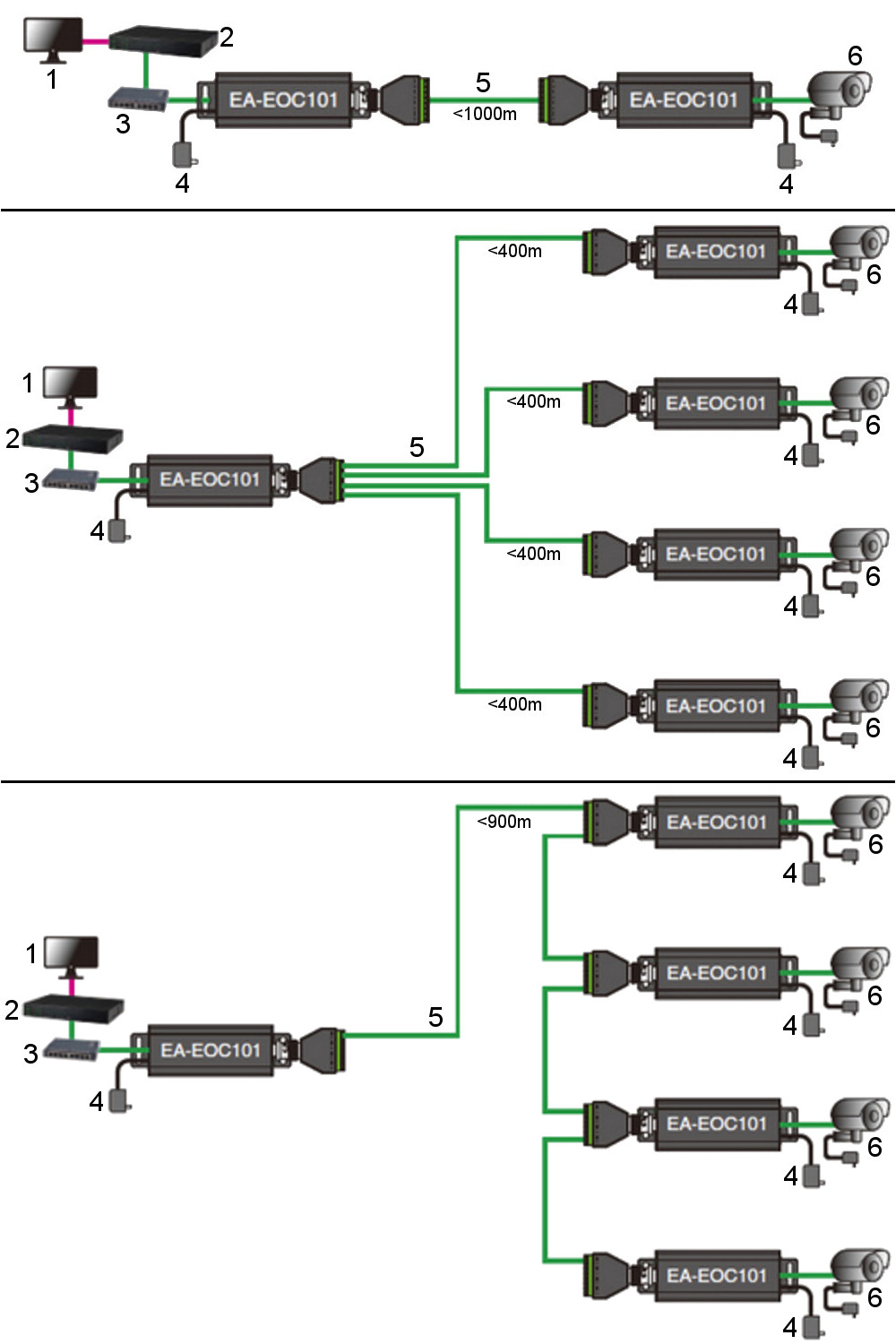| Избранные функции: | Устройство Plug & Play использует одну пару витой пары для передачи сигнала на одну IP-камеру. |