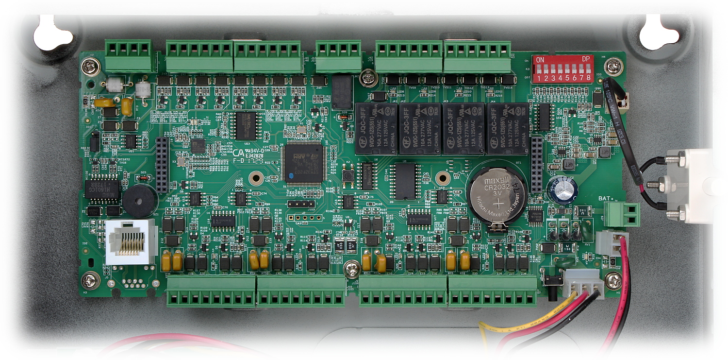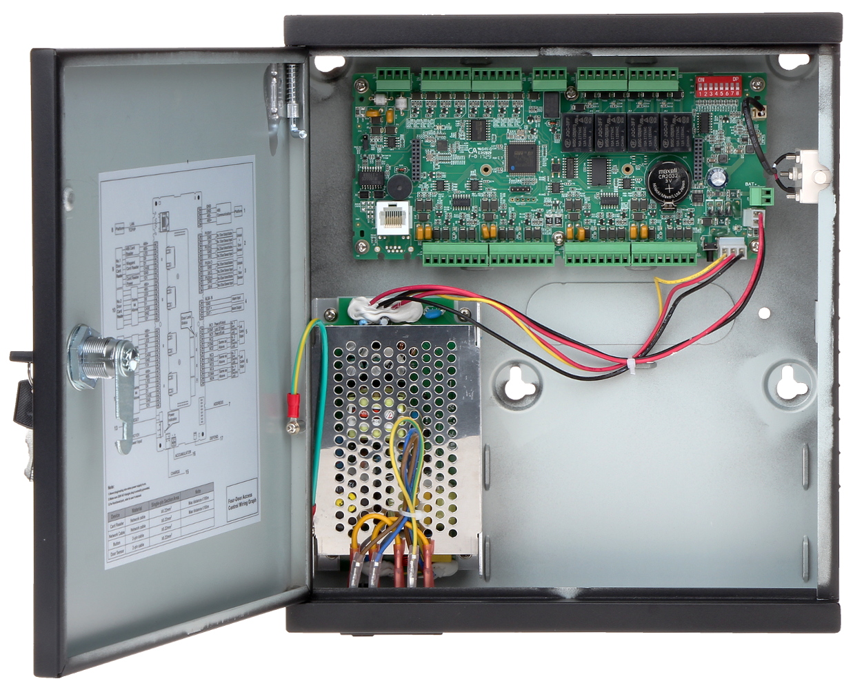 Количество поддерживаемых переходов: 4 (одностороннее движение) </span>;>Количество совместимых считывателей: 4 шт. </span>;>Поддержка батареи: макс. 7 Ач </span>;>Входные линии: 9 </span>;>Выходные строки: 5 шт. (4 шт. реле) </span>;>Коммуникация: RS-485, Ethernet, Виганд </span>;