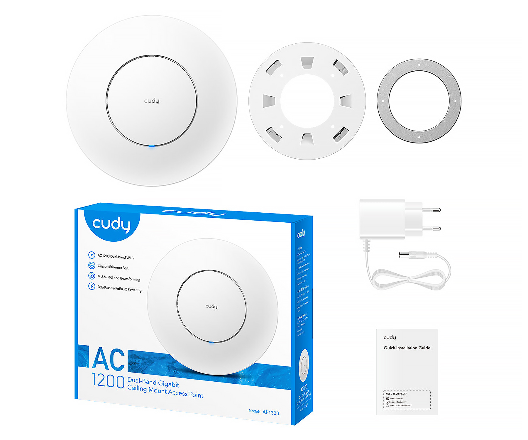 Lietotāju skaits : 100 (max) Captive Hotspot Portal – plaši konfigurējama klienta saskarne (sākumlapa, piekļuves autorizācijas veidi, atsevišķs tīkls viesiem u. c.). Мульти-SSID Поддержка технологии CUDY Whole Home Mesh Intelligent Fast Roaming Automātiska RF optimizācija Iespēja strādāt kā: Access Point (AP), Wi-Fi maršrutētājs, atkārtotājs, WISP punkts. светодиодная индикация Кнопка СБРОС Возможность крепления на стену или потолок |