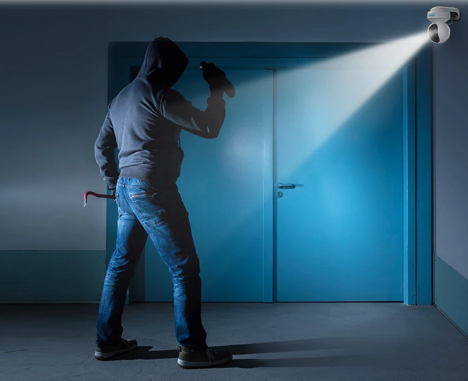 - Панорамирование на 355° и наклон на 50° — вращайте камеру, чтобы видеть всё. Встроенная сирена — мощная и громкая, чтобы отпугнуть злоумышленников.