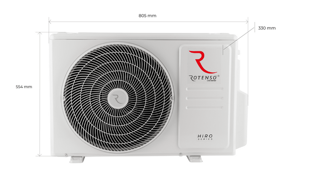 Многофункциональная машина Rotenso Hiro Современный и эффективный наружный блок, доступный в семи вариантах мощности (от 4,1 кВт до 3 кВт и класса A+ кВт, а также 12 дюймов). К нему можно подключить до пяти внутренних блоков (в зависимости от модели).