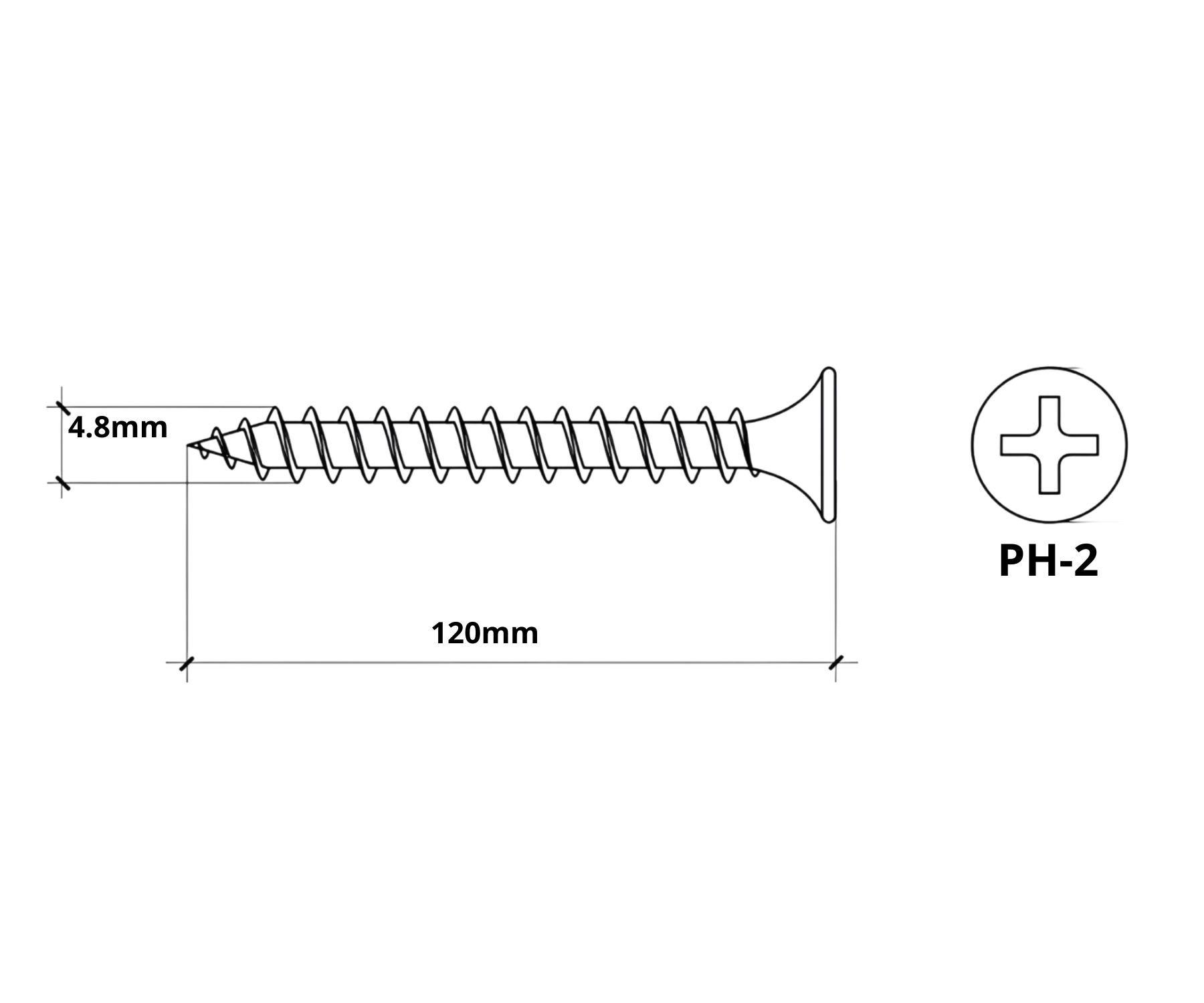 Размеры винта: Ø 4.8 x 120 mm, PH-2