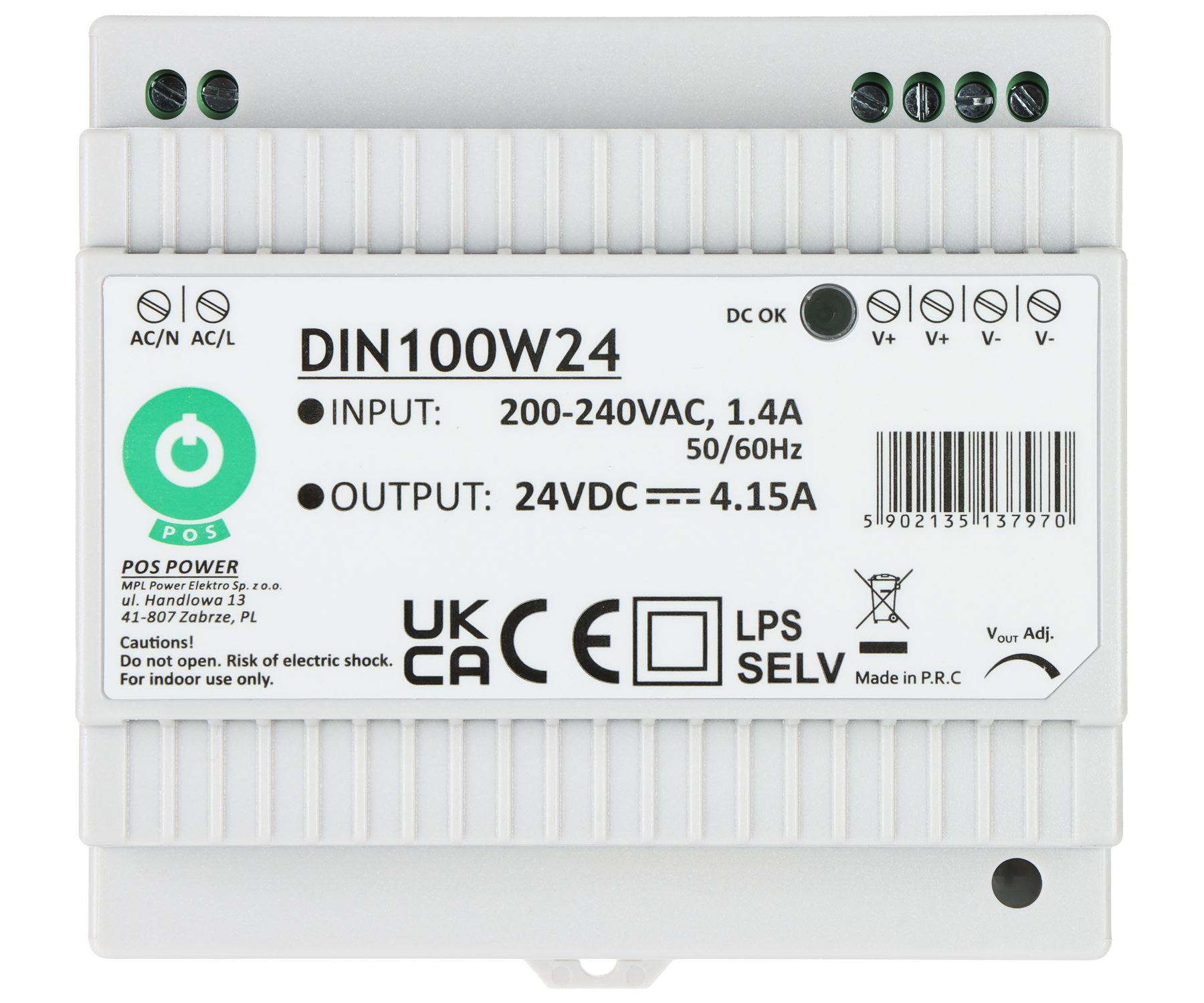 Выходное напряжение: 24 В постоянного тока </span>;>Установка выходного тока: 22… 28 В </span>;>Текущие характеристики адаптера питания: 4.15 А </span>;>Выходная мощность: 100 Вт </span>;