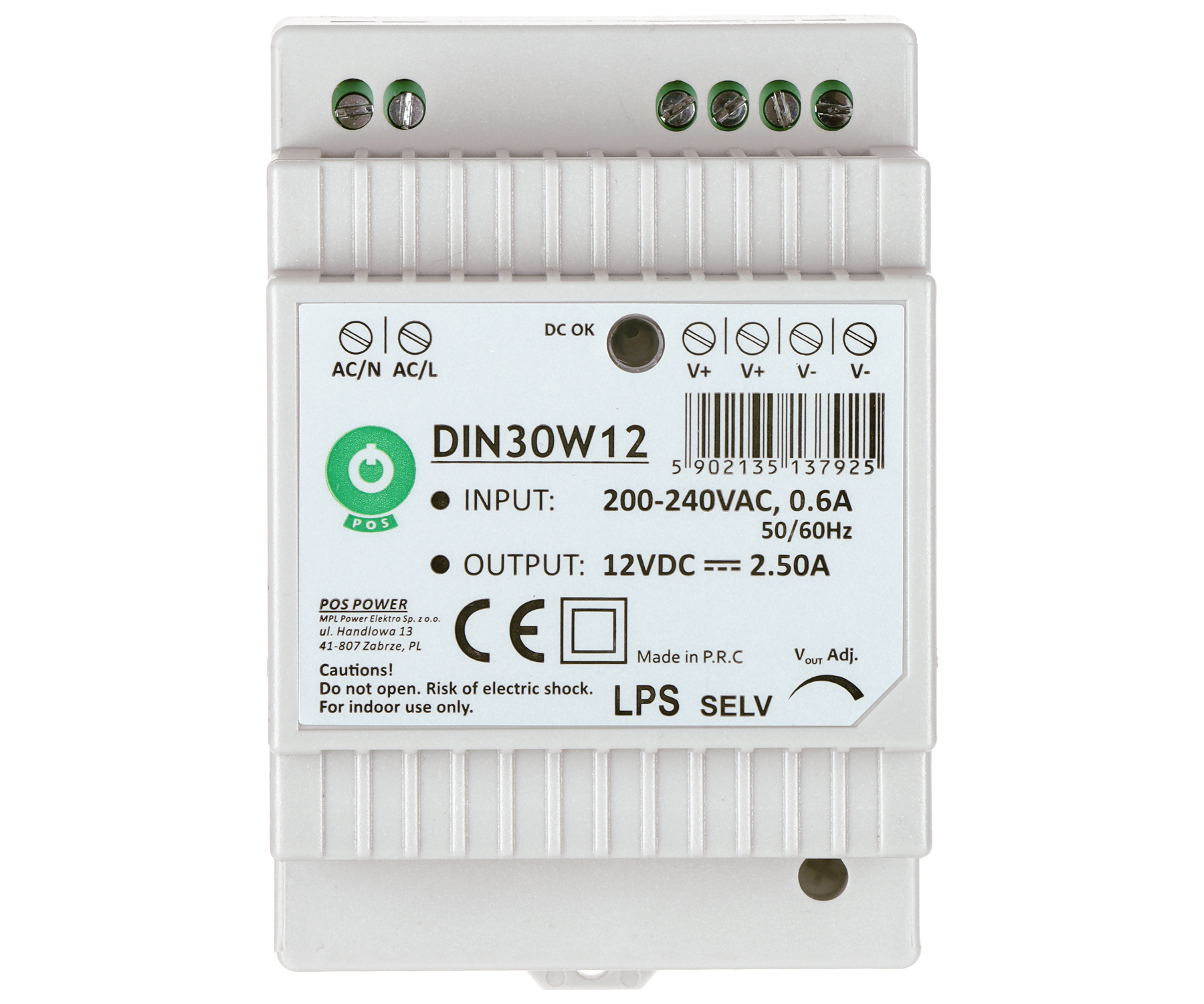 Выходное напряжение: 12 В постоянного тока </span>;>Установка выходного тока: 10,8 … 13,6 В </span>;>Текущие характеристики адаптера питания: 2,5 А </span>;>Выходная мощность: 30 Вт </span>;
