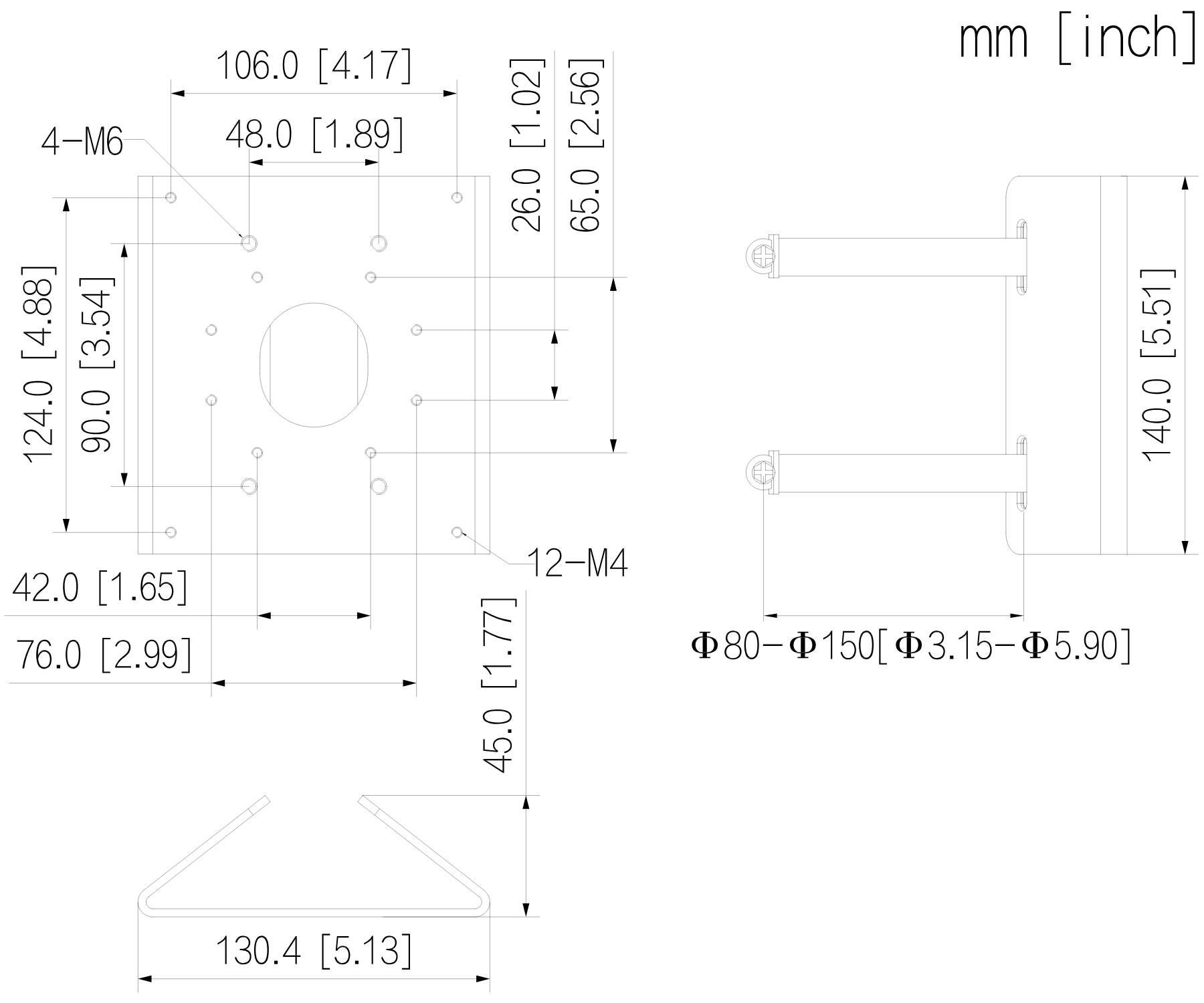 Рама предназначена для крепления камеры к мачте; Диапазон диаметров мачты: Ø 80 … Ø 150 мм Материал: Алюминиевый сплав Цвет: Белый