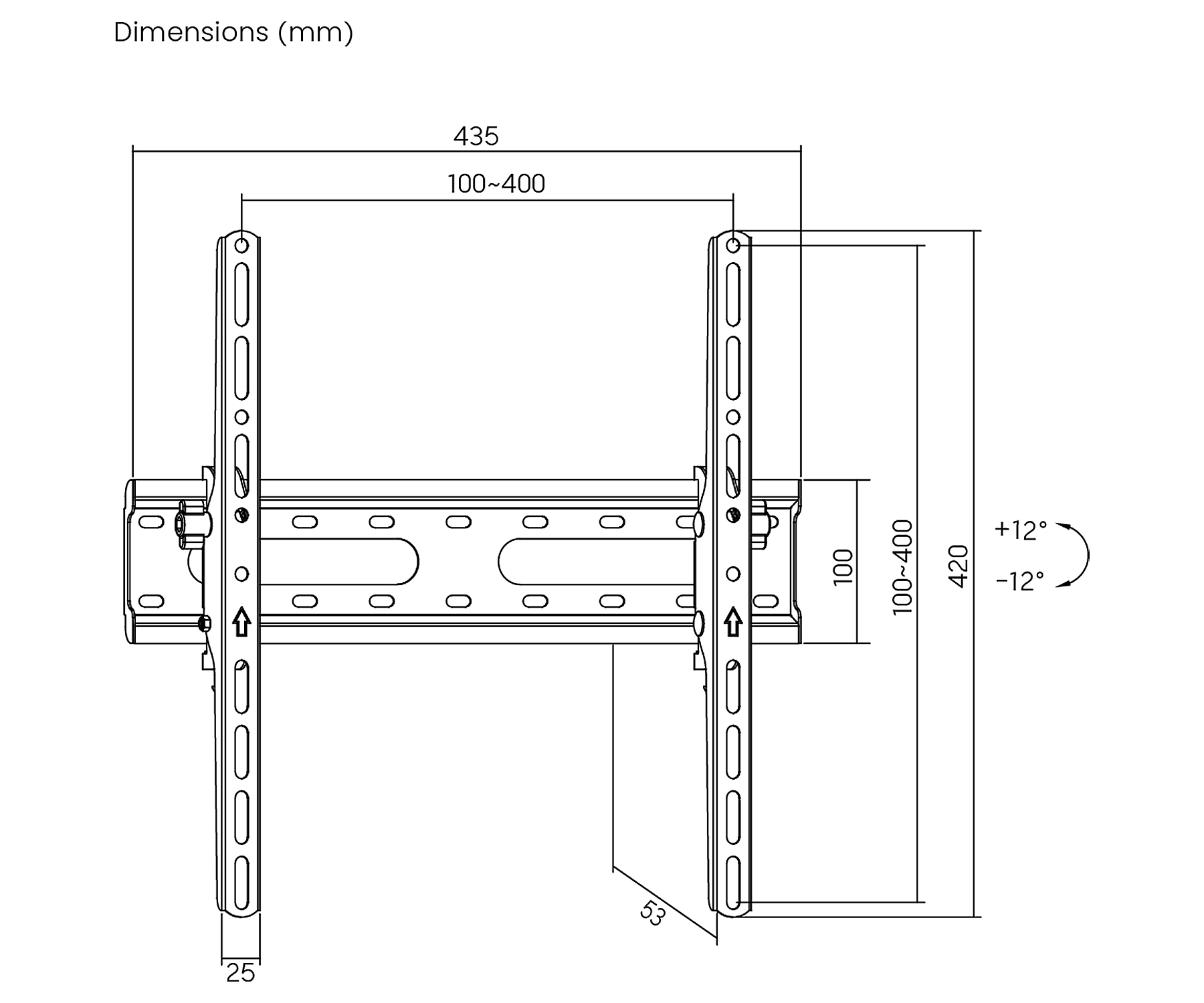 Размер экрана в дюймах: 32 " … 70 " Грузоподъемность: 45 kg Расстояние от монтажной поверхности: 53 мм Вертикальный уклон: – 12 ° … 12 °