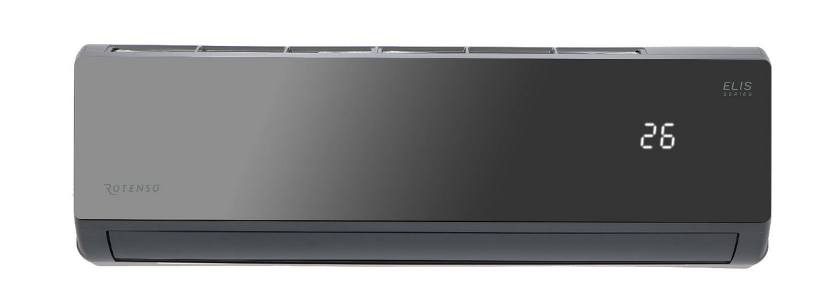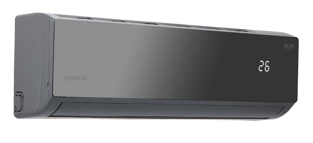 ” /v” /”zy.png” Минималистский, неподвластный времени дизайн кондиционера Rotenso® Elis с корпусом графитового цвета и передней панелью, имитирующей лист темного стекла, подчеркивает максимально эффективное кондиционирование воздуха.