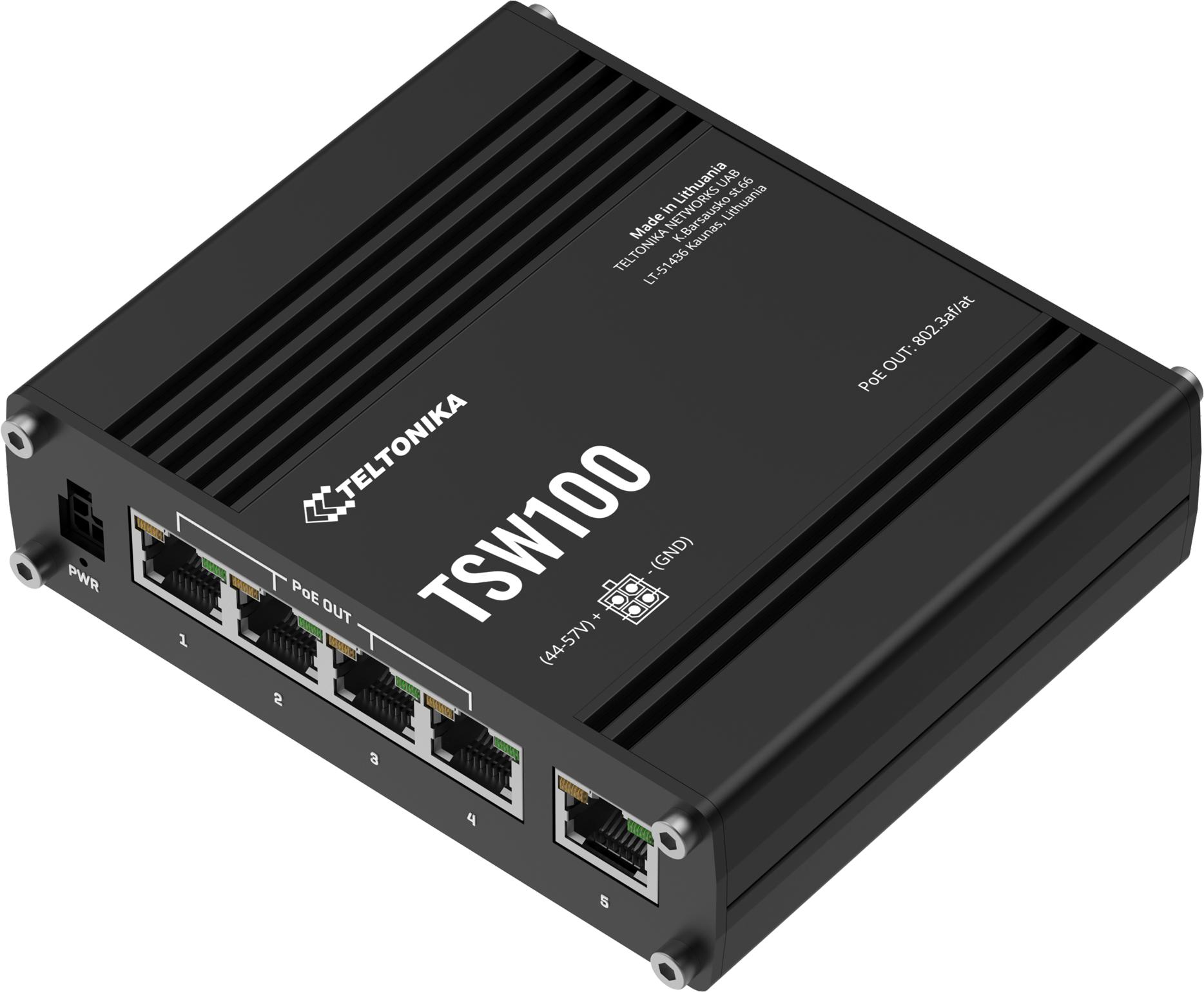 - Teltonika TSW100 гарантирует надежность и производительность. Благодаря 5 гигабитным портам Ethernet и поддержке PoE это устройство идеально подходит для обработки больших потоков данных и питания подключенных устройств. Прочная конструкция делает его незаменимым выбором в сложных промышленных условиях. Кроме того, простота установки и управления означает, что даже неопытные пользователи смогут эффективно настроить и использовать все его функции.