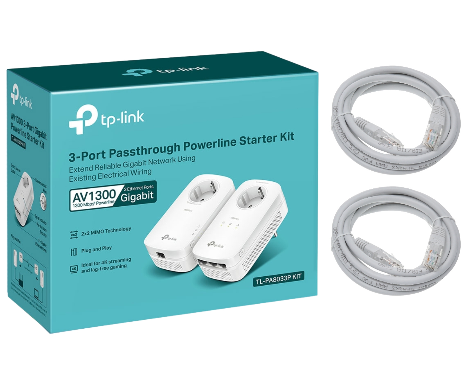 Порты LAN: 3 x Gigabit Ethernet – TL-PA8030P, 1 x Gigabit Ethernet – TL-PA8010P Скорость передачи: 1.3 Gb/s Избранные функции: Plug & Play