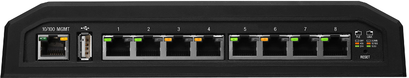 - Выход PoE (пассивный, 24 В или 8 В, 8 портов)