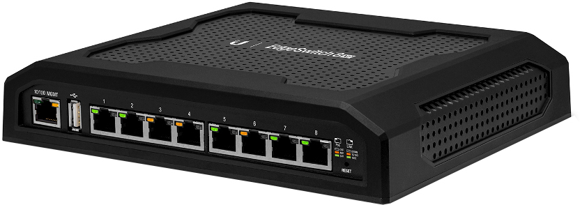 quiti EdgeSwitch 8XP — управляемый коммутатор с 8 портами Gigabit Ethernet. На всех портах предусмотрено питание PoE 24 В или 48 В (выбирается программно), что позволяет питать другие устройства. Питание подается по парам 4, 5+ / 7, 8-, то есть как в стандартных блоках питания с пассивным PoE. Устройство поддерживает управление на уровне 2 (Layer2) и поддерживает такие функции, как мониторинг портов, настройка VLAN, STP и RSTP. При необходимости PoE на соответствующем порту можно отключить. Максимальная выходная мощность составляет 11,5 Вт на порт при 24 В и 23 Вт на порт при 48 В. Управление осуществляется через интуитивно понятный веб-интерфейс.