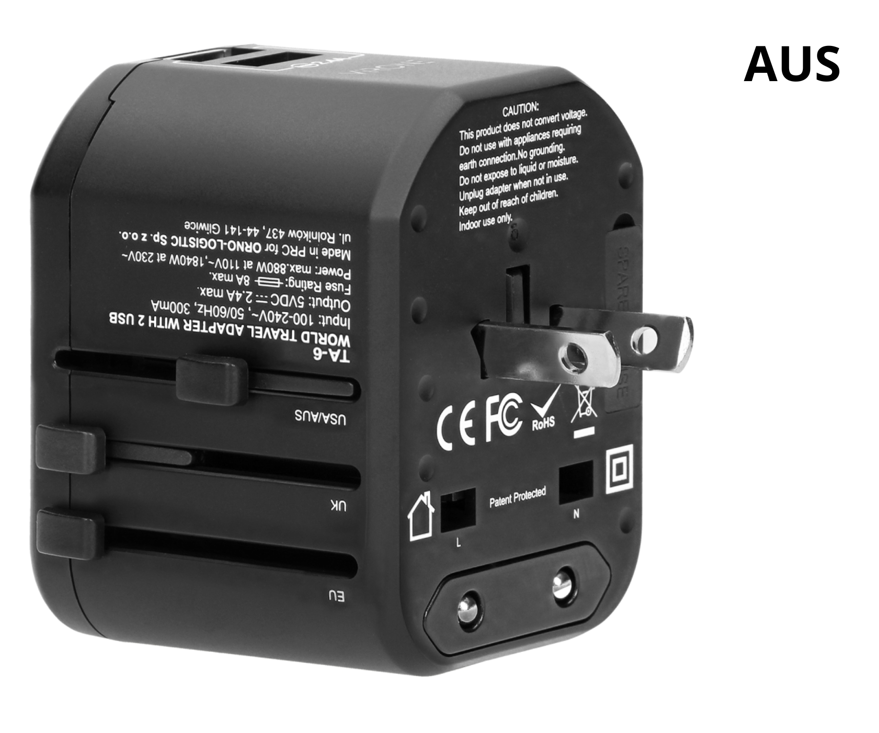 Iekārtu, piem., viedtālruņu u.tml. uzlādēšana : 2 x USB-A ligzda 5 V / 2.4 A, Диодный индикатор напряжения Защита: Плавкий предохранитель 8 А Цвет : черный |