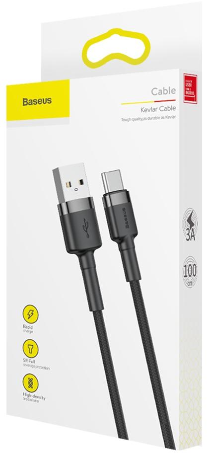 Основные характеристики кабеля Baseus Cafule Nylon USB/USB-C QC 3.0 3A 1m CATKLF-BG1: