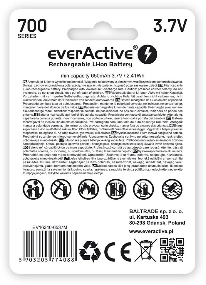 Аккумулятор 16340 / R-CR123 3V everActive 700mAh (1 шт.) с защитой – характеристики и технические данные: